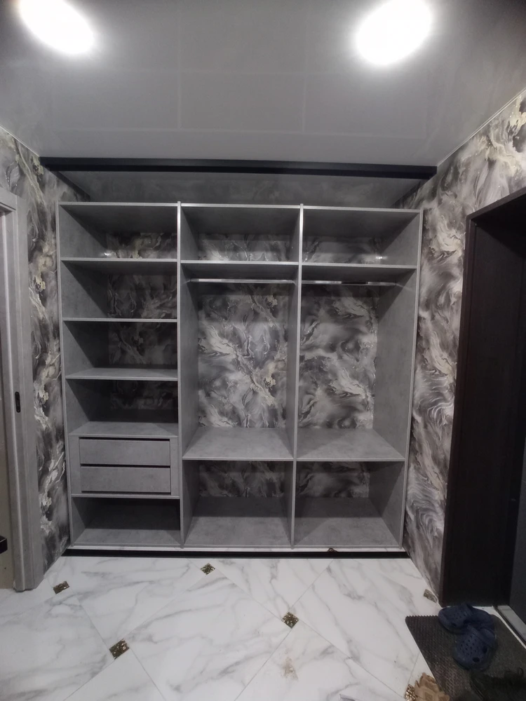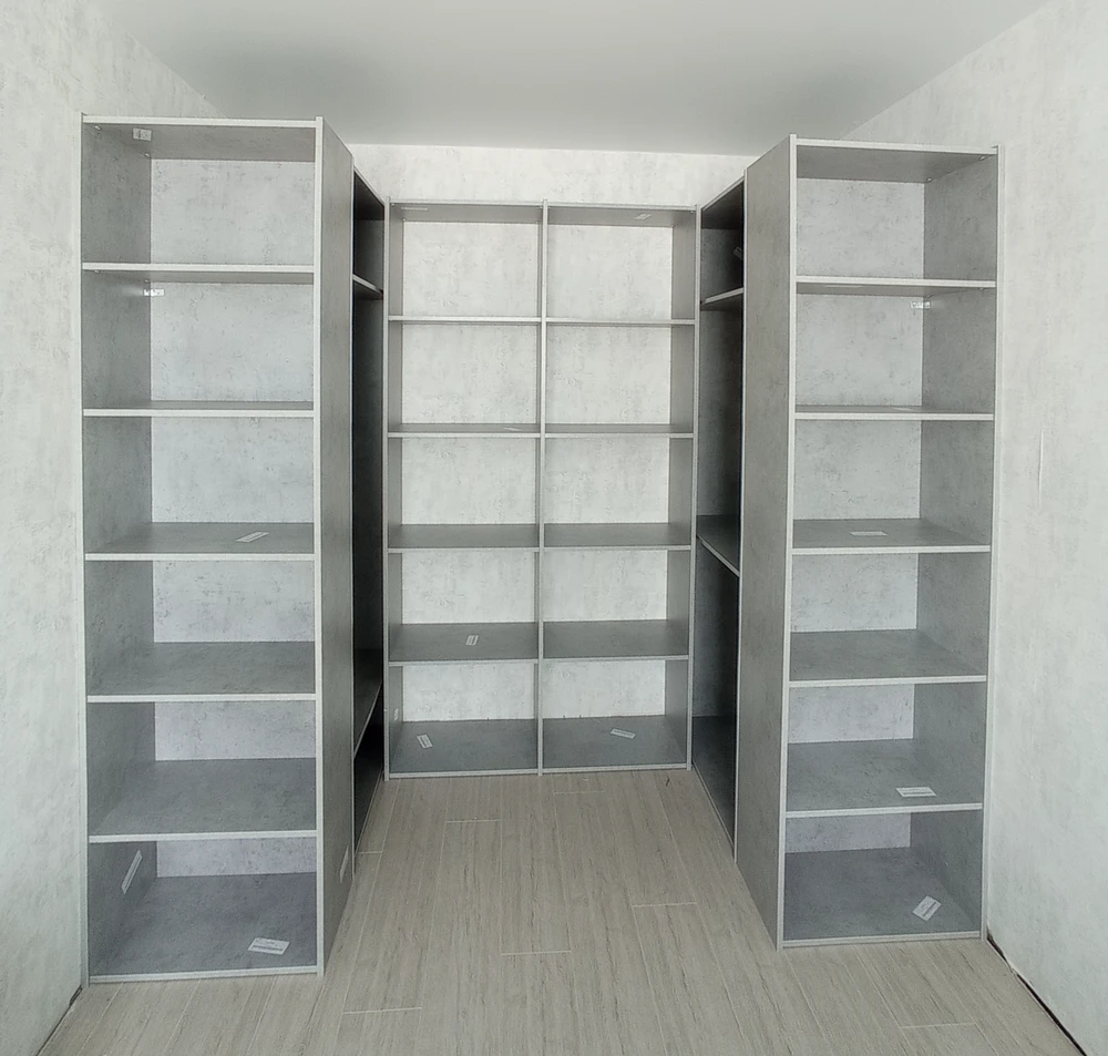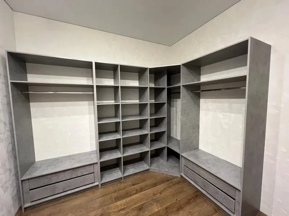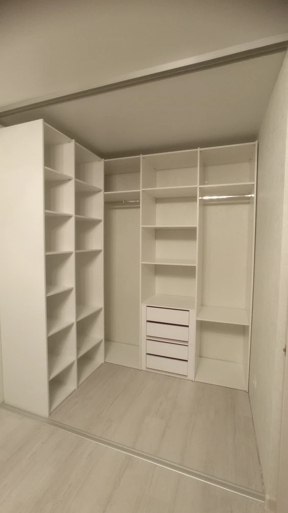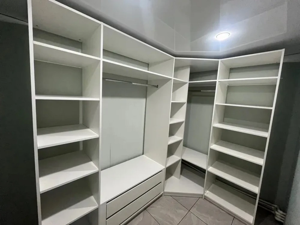 Готовая гардеробная система обеспечивает комфортное хранение вещей в помещениях с небольшой площадью.