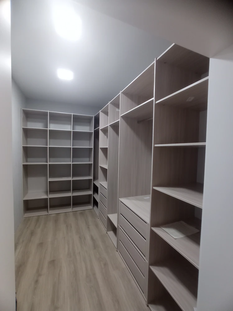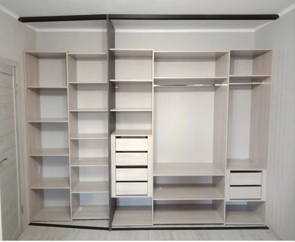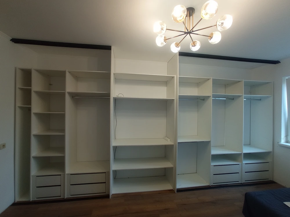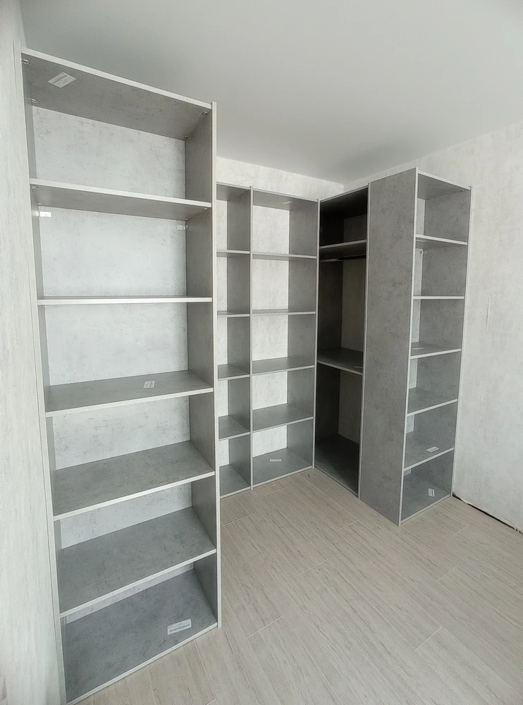 Готовая гардеробная система обеспечивает комфортное хранение вещей в помещениях с небольшой площадью.