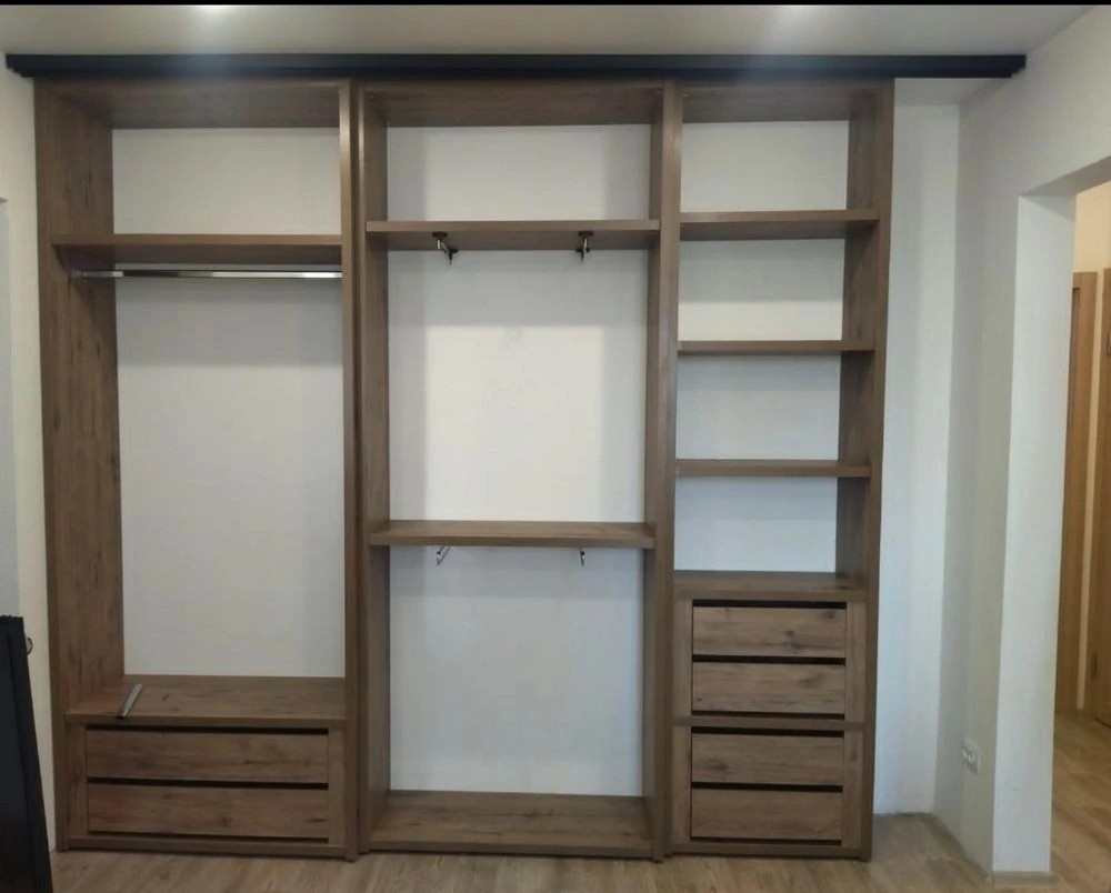 Эффективное решение помогает расположить повседневную одежду на открытых полках и верхнюю одежду на штанге, которая выдерживает вес до 60 кг.