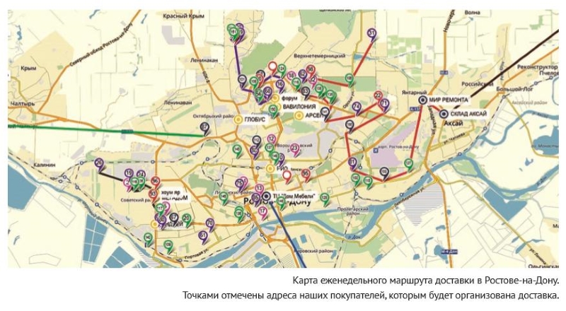 Карта еженедельного маршрута доставки г. Ростов